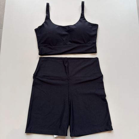 O top possui bojo removível e modelagem anatômica, com alças firmes e sustentação ideal para treinos leves a moderados, proporcionando segurança e elegância. Já o short de cintura alta oferece excelente compressão abdominal, ajudando a modelar a silhueta e evitando que a peça deslize durante o uso.